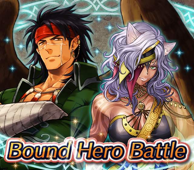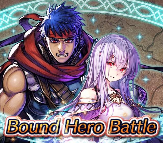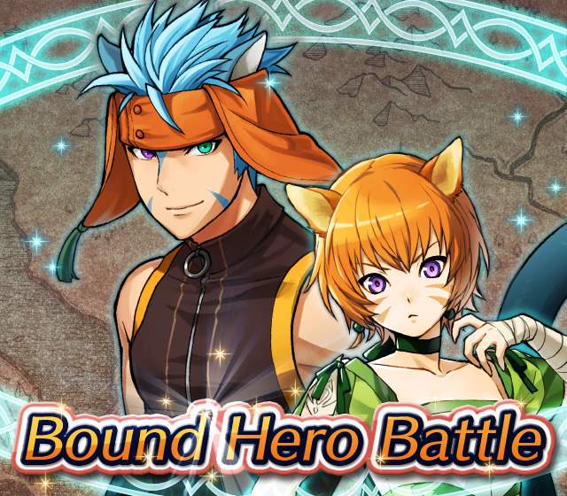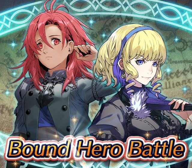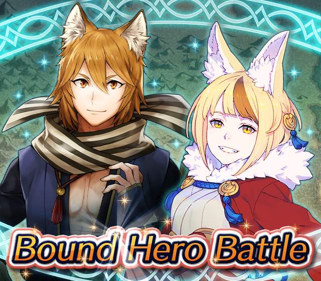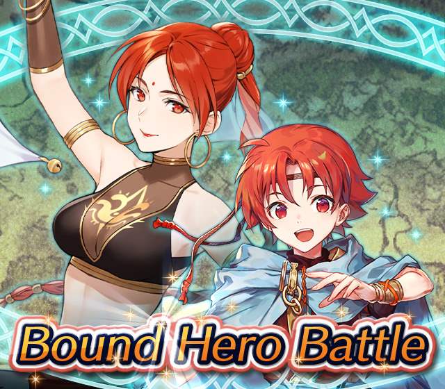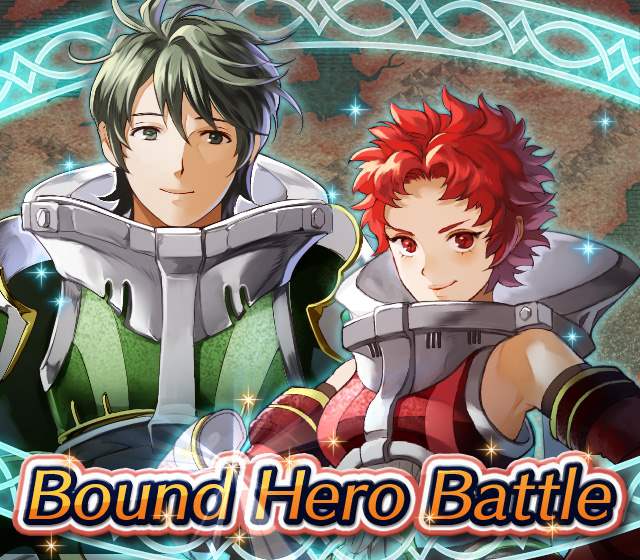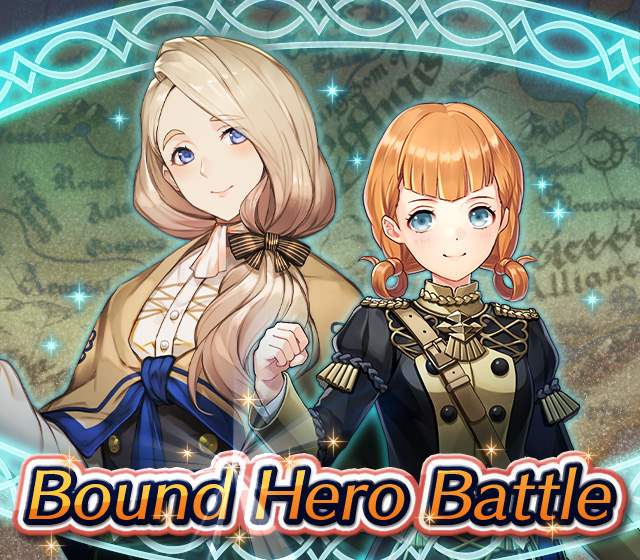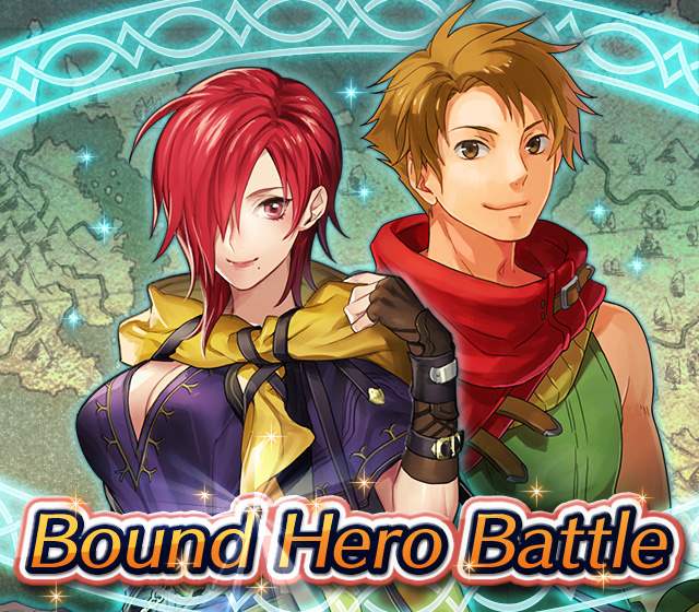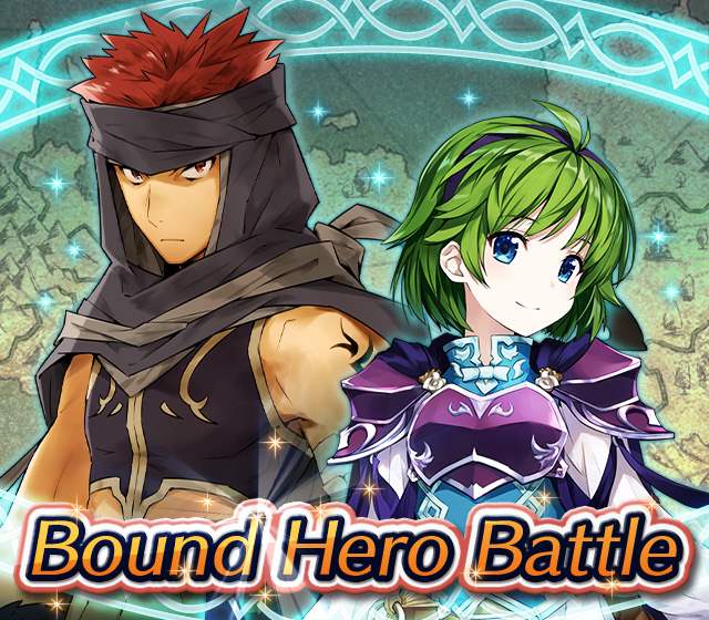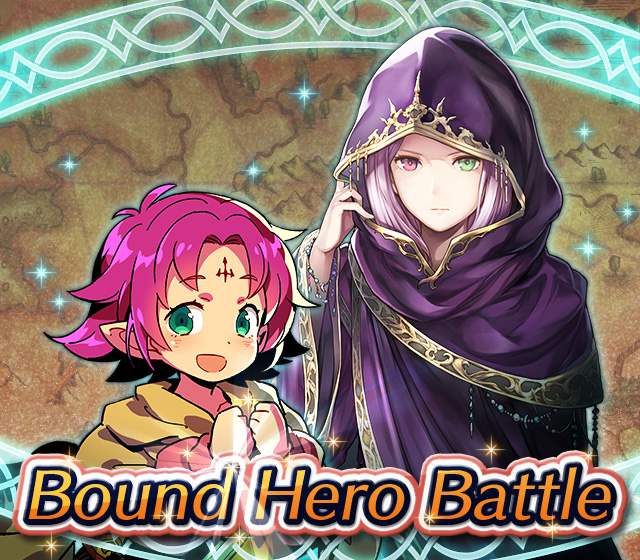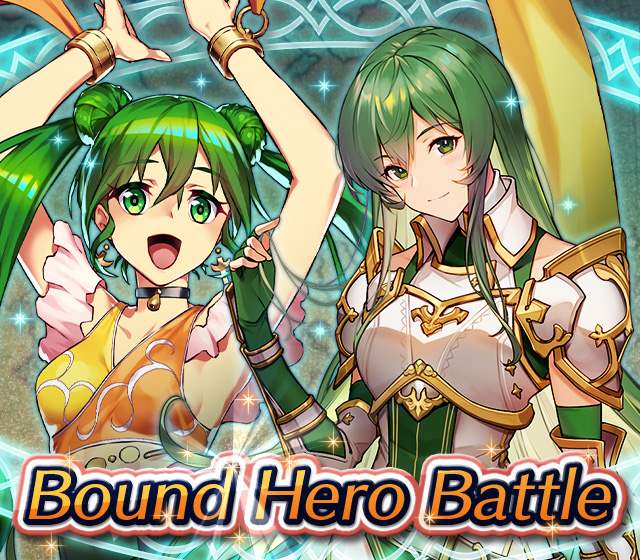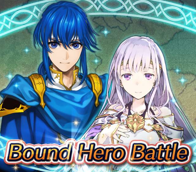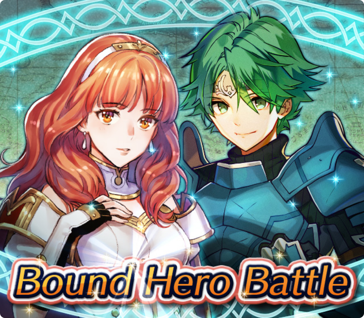 Map Rewards Description Availability Summoning event 2 (Hard) 3 (Lunatic) 4 (Infernal)Fire Emblem Echoes: Shadows of Valentia is the newest Fire Emblem title in the series. Now Heroes from that game are appearing in battle in Special Maps for a Bound Hero Battle with Alm & Celica !First availability: 2017-07-06T07:00:00Z – 2017-07-13T06:59:59Z Last availability: 2020-02-02T07:00:00Z – 2020-02-03T06:59:59Z 1 intermediary appearance Focus: Alm and Celica's Battle 2 (Hard) 3 (Lunatic) 4 (Infernal)The teacher-student pair from Fire Emblem: The Binding Blade is ready for battle! You can find these two powerful mages in Special Maps. It's time for a Bound Hero Battle with Cecilia & Lilina ! First availability: 2017-08-07T07:00:00Z – 2017-08-14T06:59:59Z Last availability: 2020-02-03T07:00:00Z – 2020-02-04T06:59:59Z 2 intermediary appearance Focus: Cecilia and Lilina's Battle 2 (Hard) 3 (Lunatic) 4 (Infernal)The two main characters from The Fire Emblem: The Sacred Stones game are ready for battle! You can find them in Special Maps. It's time for a Bound Hero Battle with Ephraim and Eirika ! First availability: 2017-09-07T07:00:00Z – 2017-09-13T06:59:59Z Last availability: 2020-02-04T07:00:00Z – 2020-02-05T06:59:59Z 1 intermediary appearance Focus: Ephraim and Eirika's Battle 2 (Hard) 3 (Lunatic) 4 (Infernal)Heroes from the Fire Emblem: The Blazing Blade game are coming to Special Maps for a Bound Hero Battle with Ninian and Hawkeye ! First availability: 2017-09-20T07:00:00Z – 2017-09-27T06:59:59Z Last availability: 2020-02-05T07:00:00Z – 2020-02-07T06:59:59Z 1 intermediary appearance Focus: Ninian & Hawkeye's Battle 2 (Hard) 3 (Lunatic) 4 (Infernal)Sister princesses of Macedon from the Fire Emblem: Mystery of the Emblem game appear in battle in Special Maps—it's Bound Hero Battle: Minerva & Maria ! First availability: 2017-10-11T07:00:00Z – 2017-10-18T06:59:59Z Last availability: 2020-02-05T07:00:00Z – 2020-02-07T06:59:59Z 1 intermediary appearance Focus: Minerva & Maria's Battle 2 (Hard) 3 (Lunatic) 4 (Infernal)These siblings from the Fire Emblem Fates : Birthright game are now in Special Maps—it's Bound Hero Battle: Takumi & Hinoka ! First availability: 2017-11-16T07:00:00Z – 2017-11-24T06:59:59Z Last availability: 2020-02-07T07:00:00Z – 2020-02-08T06:59:59Z 1 intermediary appearance Focus: Takumi & Hinoka's Battle 2 (Hard) 3 (Lunatic) 4 (Infernal)Tana: Winged Princess and Amelia: Rose of the War from Fire Emblem: The Sacred Stones are appearing in battle in Special Maps for a Bound Hero Battle with Amelia & Tana!First availability: 2017-12-14T07:00:00Z – 2017-12-23T06:59:59Z Last availability: 2020-02-08T07:00:00Z – 2020-02-09T06:59:59Z 1 intermediary appearance Focus: Tana & Amelia's Battle 2 (Hard) 3 (Lunatic) 4 (Infernal)Liege and retainer from Fire Emblem: The Blazing Blade , Raven: Peerless Fighter and Lucius: The Light are waiting in Special Maps for Bound Hero Battle: Raven & Lucius ! First availability: 2017-12-30T07:00:00Z – 2018-01-06T06:59:59Z Last availability: 2020-02-09T07:00:00Z – 2020-02-10T06:59:59Z 1 intermediary appearance Focus: Raven & Lucius's Battle 2 (Hard) 3 (Lunatic) 4 (Infernal)Corrin: Fateful Prince and Azura: Lady of the Lake from the Fire Emblem Fates game are here for Bound Hero Battle: Corrin & Azura !First availability: 2018-02-16T07:00:00Z – 2018-02-24T06:59:59Z Last availability: 2020-02-10T07:00:00Z – 2020-02-11T06:59:59Z 1 intermediary appearance Focus: Corrin & Azura's Battle 2 (Hard) 3 (Lunatic) 4 (Infernal)The prince and princess of Ylisse Chrom: Exalted Prince and Lissa: Sprightly Cleric are waiting in Special Maps for Bound Hero Battle: Chrom and Lissa First availability: 2018-03-18T07:00:00Z – 2018-03-25T06:59:59Z Last availability: 2020-02-11T07:00:00Z – 2020-02-12T06:59:59Z 1 intermediary appearance Focus: Chrom & Lissa's Battle 2 (Hard) 3 (Lunatic) 4 (Infernal)Here come two Manaketes from the Fire Emblem Awakening game, Tiki: Naga's Voice and Nowi: Eternal Youth . They're in Special Maps for Bound Hero Battle: Tiki & Nowi . First availability: 2018-04-10T07:00:00Z – 2018-04-17T06:59:59Z Last availability: 2020-02-12T07:00:00Z – 2020-02-13T06:59:59Z 1 intermediary appearance Focus: Tiki & Nowi's Battle 2 (Hard) 3 (Lunatic) 4 (Infernal)Siblings from different fathers, Seliph: Heir of Light and Julia: Naga's Blood , are in Special Maps for Bound Hero Battle: Seliph & Julia ! First availability: 2018-06-05T07:00:00Z – 2018-06-12T06:59:59Z Last availability: 2020-02-13T07:00:00Z – 2020-02-14T06:59:59Z 1 intermediary appearance Focus: Seliph and Julia's Battle 2 (Hard) 3 (Lunatic) 4 (Infernal)From the Fire Emblem: The Blazing Blade game, Hector: General of Ostia and Matthew: Faithful Spy are in Special Maps for Bound Hero Battle: Hector & Matthew ! First availability: 2018-07-05T07:00:00Z – 2018-07-12T06:59:59Z Last availability: 2020-02-14T07:00:00Z – 2020-02-15T06:59:59Z 2 intermediary appearance Focus: Hector & Matthew's Battle 2 (Hard) 3 (Lunatic) 4 (Infernal)From the Fire Emblem Fates game, Leo: Sorcerous Prince and Elise: Budding Flower are in Special Maps for Bound Hero Battle: Leo & Elise ! First availability: 2018-07-22T07:00:00Z – 2018-07-29T06:59:59Z Last availability: 2020-02-15T07:00:00Z – 2020-02-16T06:59:59Z 1 intermediary appearance Focus: Leo & Elise's Battle 2 (Hard) 3 (Lunatic) 4 (Infernal)From the Fire Emblem: Radiant Dawn game, Micaiah: Priestess of Dawn and her protector, Sothe: Zephyr , are in Special Maps for Bound Hero Battle: Micaiah & Sothe ! First availability: 2018-08-20T07:00:00Z – 2018-08-28T06:59:59Z Last availability: 2020-02-16T07:00:00Z – 2020-02-17T06:59:59Z 1 intermediary appearance Focus: Micaiah & Sothe's Battle 2 (Hard) 3 (Lunatic) 4 (Infernal)From the Fire Emblem: Thracia 776 game, Ishtar: Thunder Goddess and Reinhardt: Thunder's Sword are waiting in Special Maps for Bound Hero Battle: Ishtar & Reinhardt ! First availability: 2018-10-04T07:00:00Z 
